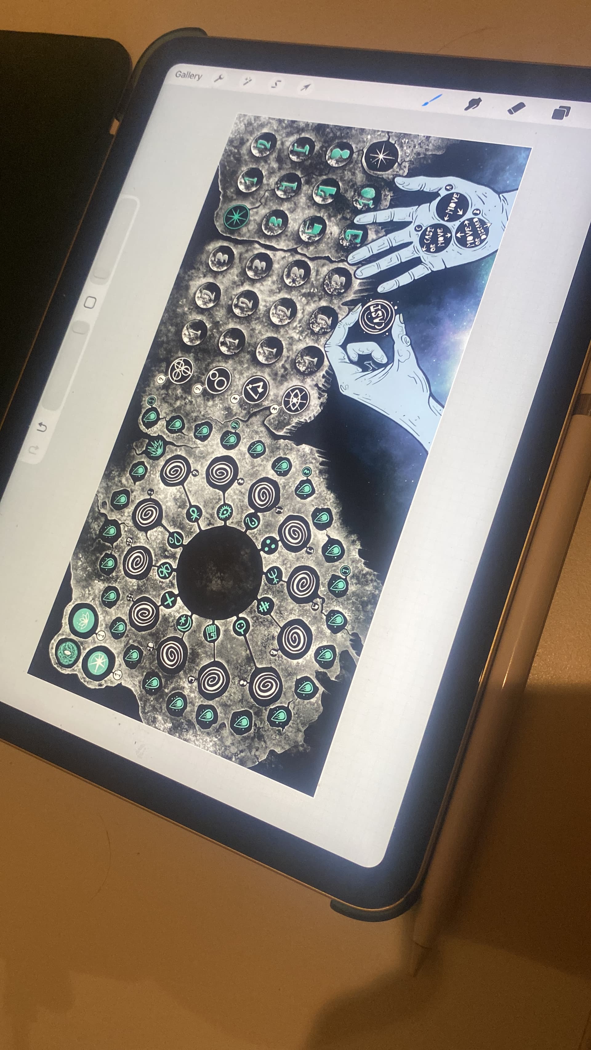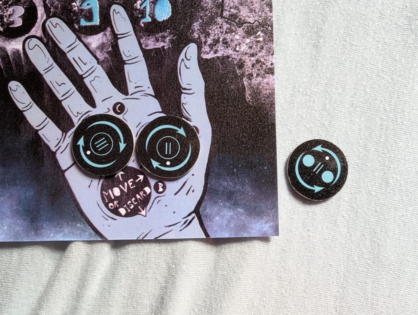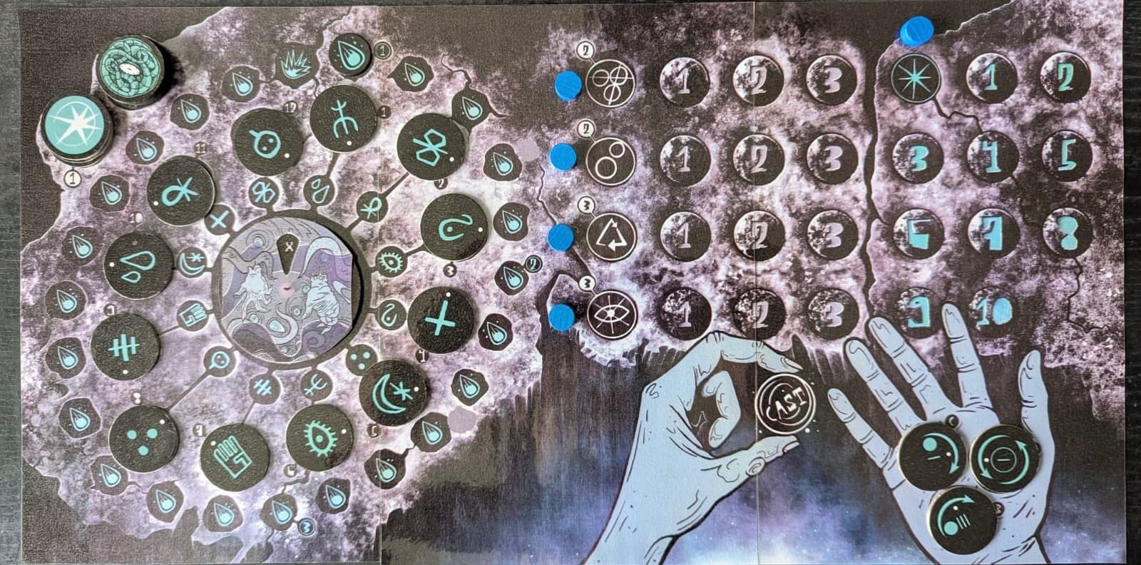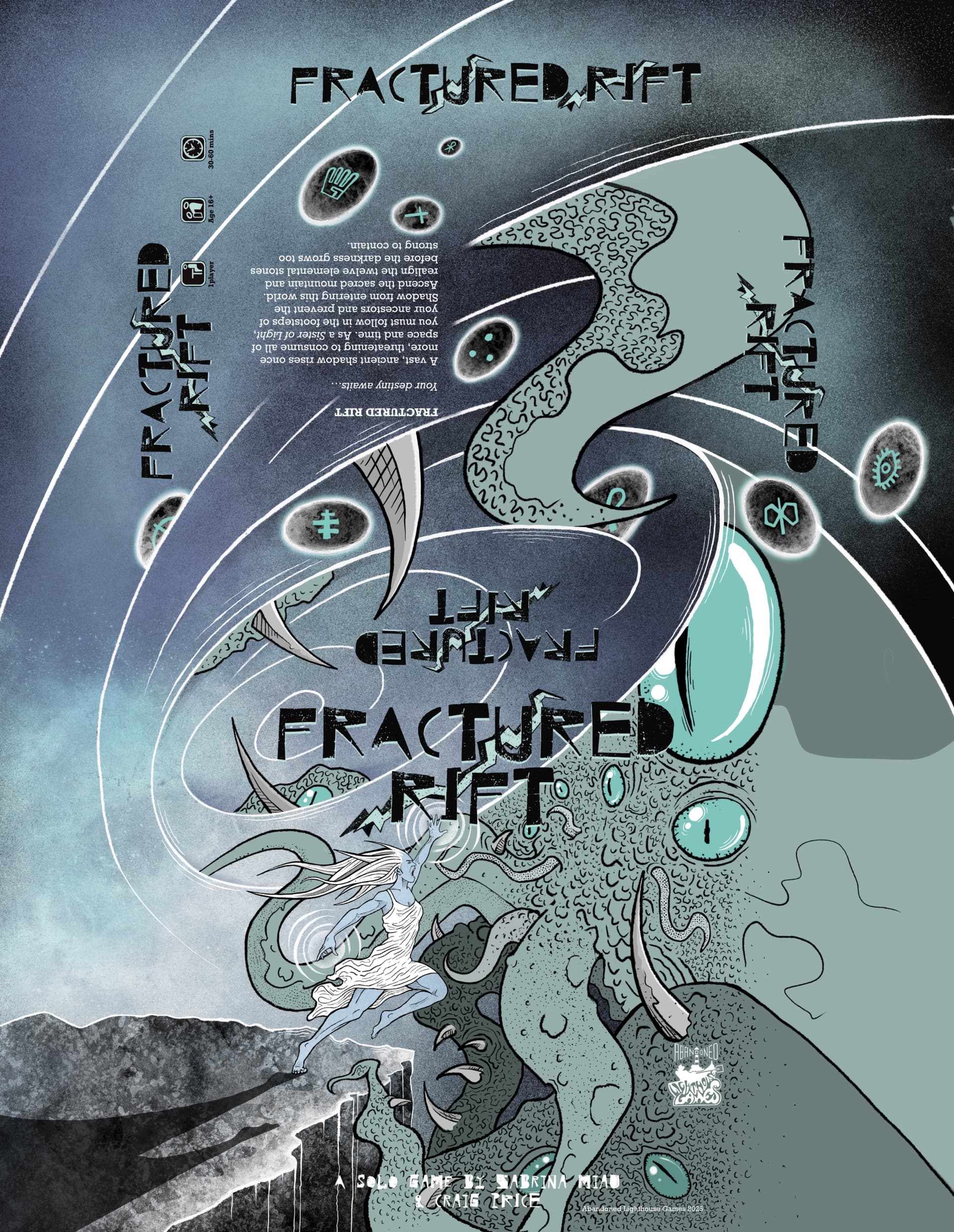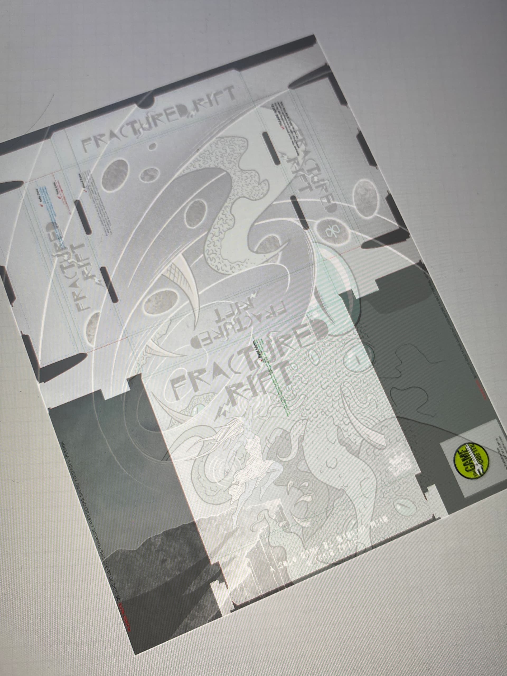 Things are moving along nicely with my cosmic occult solo puzzler, Fractured Rift… This will be a Gamecrafter release and Crowdsale. I just wanted the ease of a Crafter release as the other projects have been so much hard work dealing with publishers and manufacturers, shipping and fulfilment companies. All that has really made me appreciate TGC and it’s really nice to be designing a game that I won’t have to do any of the business nonsense for! Hope you like what you see! This is the box art, board and spinning disks. It’s quite a brain-teaser and I love that cosmic horror theme! I’ve gone full fantasy graffiti on the art because- I can! And I love that weird combination of styles! Whatcha all think?