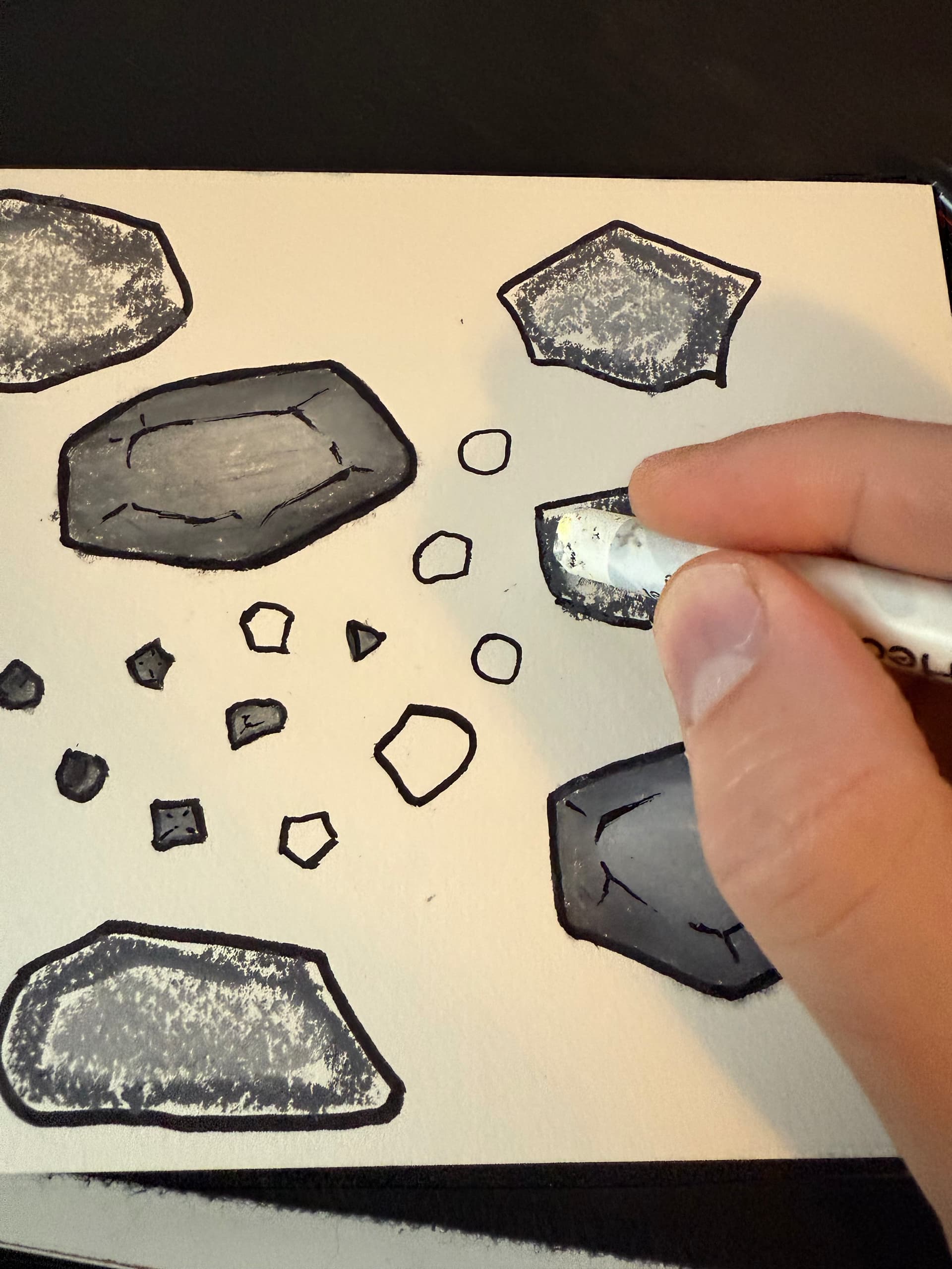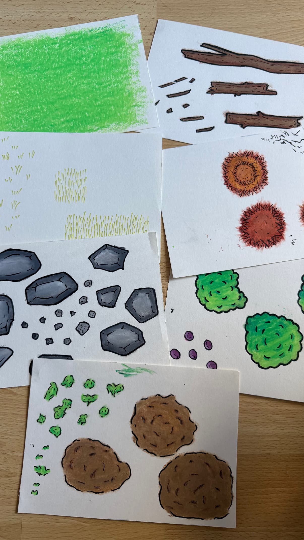 This is what I ended up with. Everything was painted with oil pastels and paint markers.