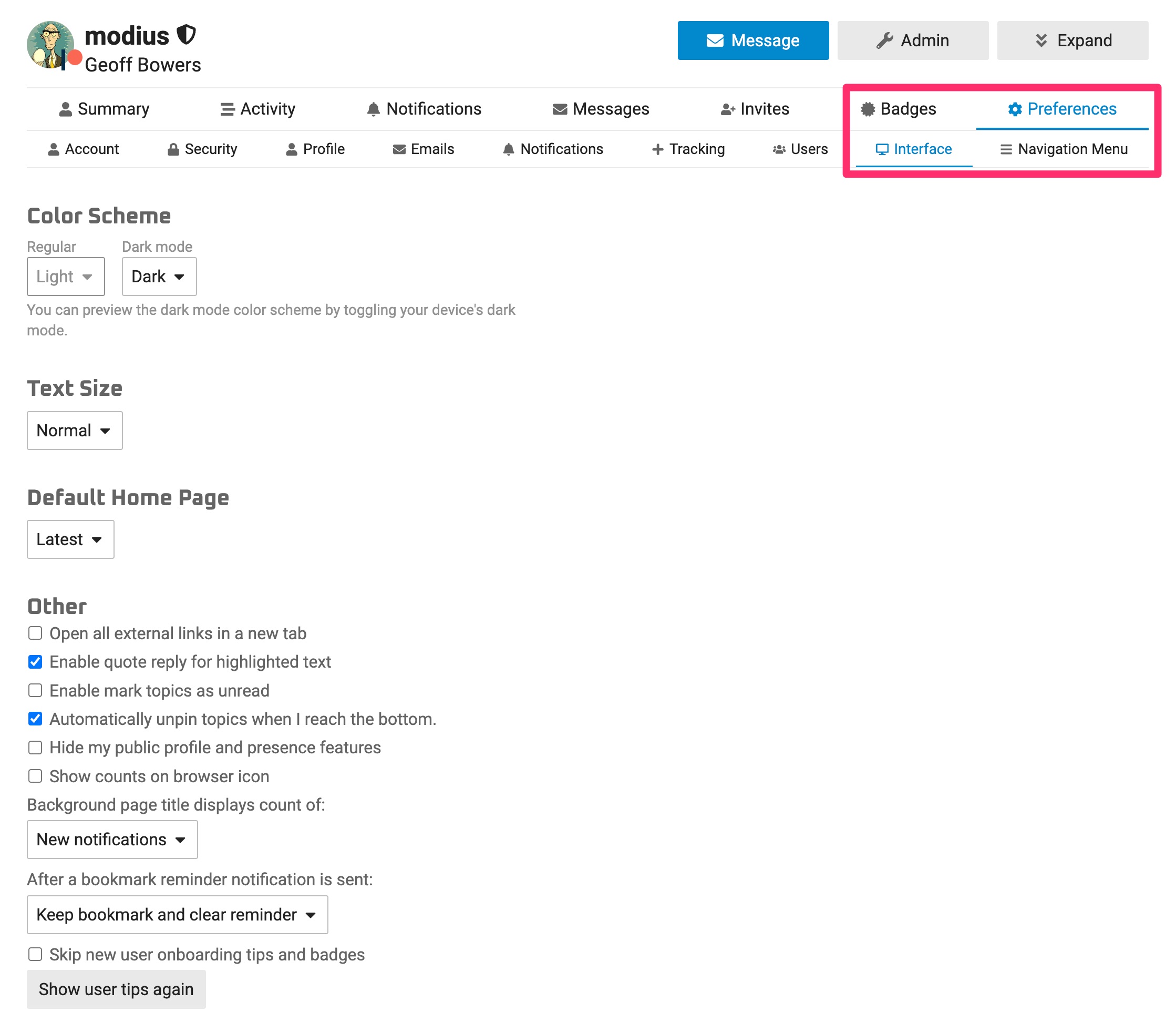 I believe the answer to my question is “No,” this is not an option for users. While I appreciate that admin can make changes to the site as a whole, I didn’t intend for my preferences on this to shape the site for everyone. So, I’ll let y’all decide the defaults, and I’ll get used to it – but again, Thank you for checking it out.