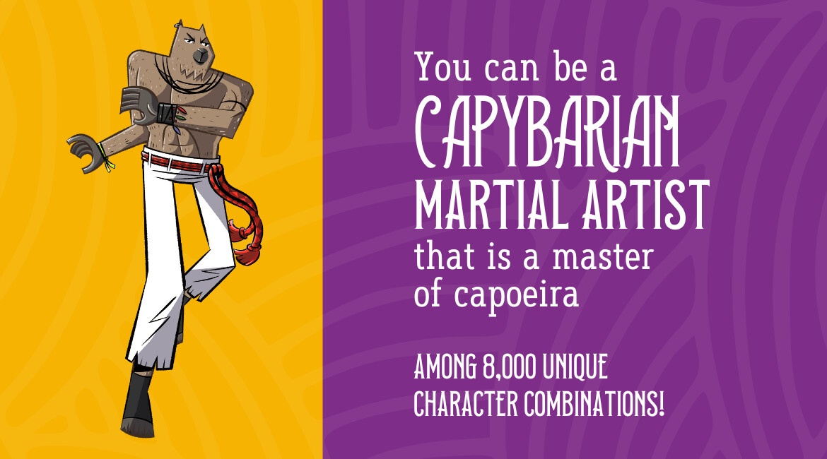 I really like the progress tracking mechanic and one of the example characters is a Capybarian Martial Artist who is a master of capoeira!