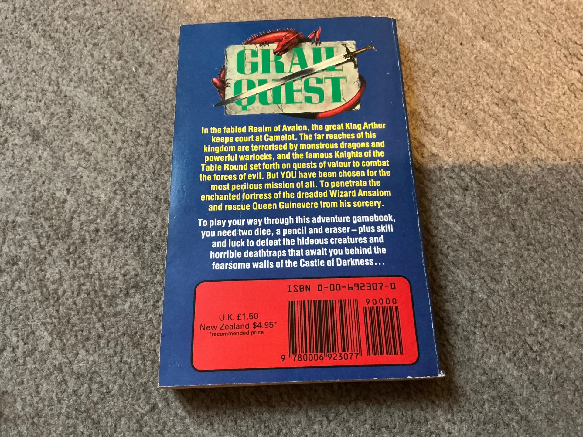 Grail Quest by JH (Herbie) Brennan was published in 1984 by Armada in response to Fighting Fantasy and Lone Wolf’s huge sales success. It is pitched for slightly younger readers than FF and features Merlin and your talking sword EJ (Excalibur Jnr). The second book is one of the great game books as it is basically like a real rpg with a map that you explore at your own pace.