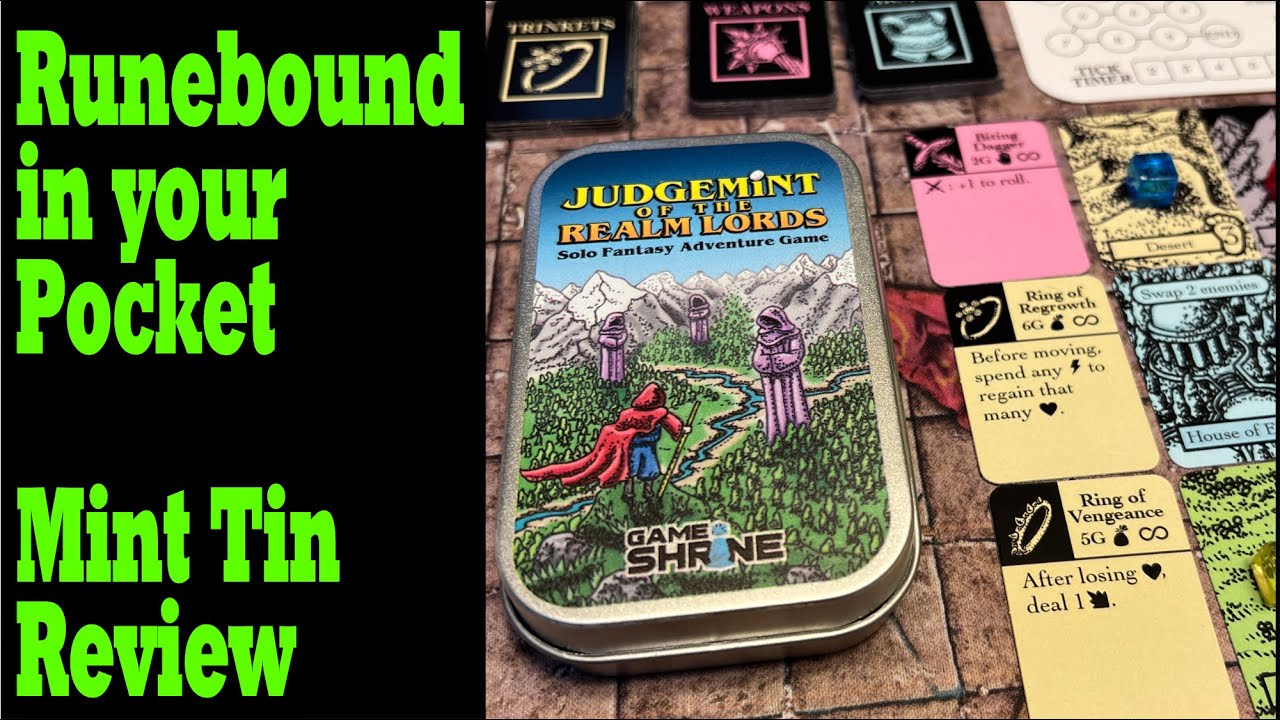 Daniel (@dungeondive) returns with a gem that might just redefine the phrase “punching above its weight.” Judgment of the Realm Lords is a solo fantasy adventure game that crams the essence of Runebound Second Edition—quests, loot, tactical combat, and a ticking doom clock—into a metal mint tin. Yes, really. Despite its compact size, it’s a full-featured experience with a modular map, 10 playable heroes, a range of monsters, equipment decks, and stance-based combat with more nuance than many full-sized games manage. Setup looks like you spilled a dragon’s hoard across your desk, but once sorted, the gameplay flows with surprising elegance.