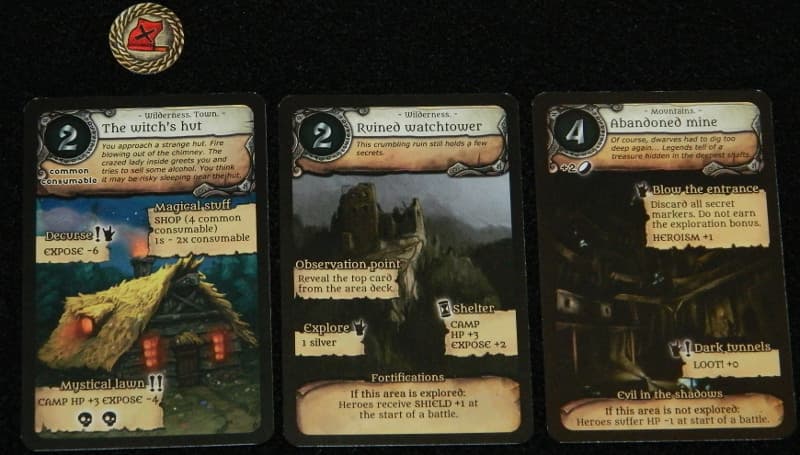 - Based on Assault on Doomrock (pictured), location cards with multiple options/features.