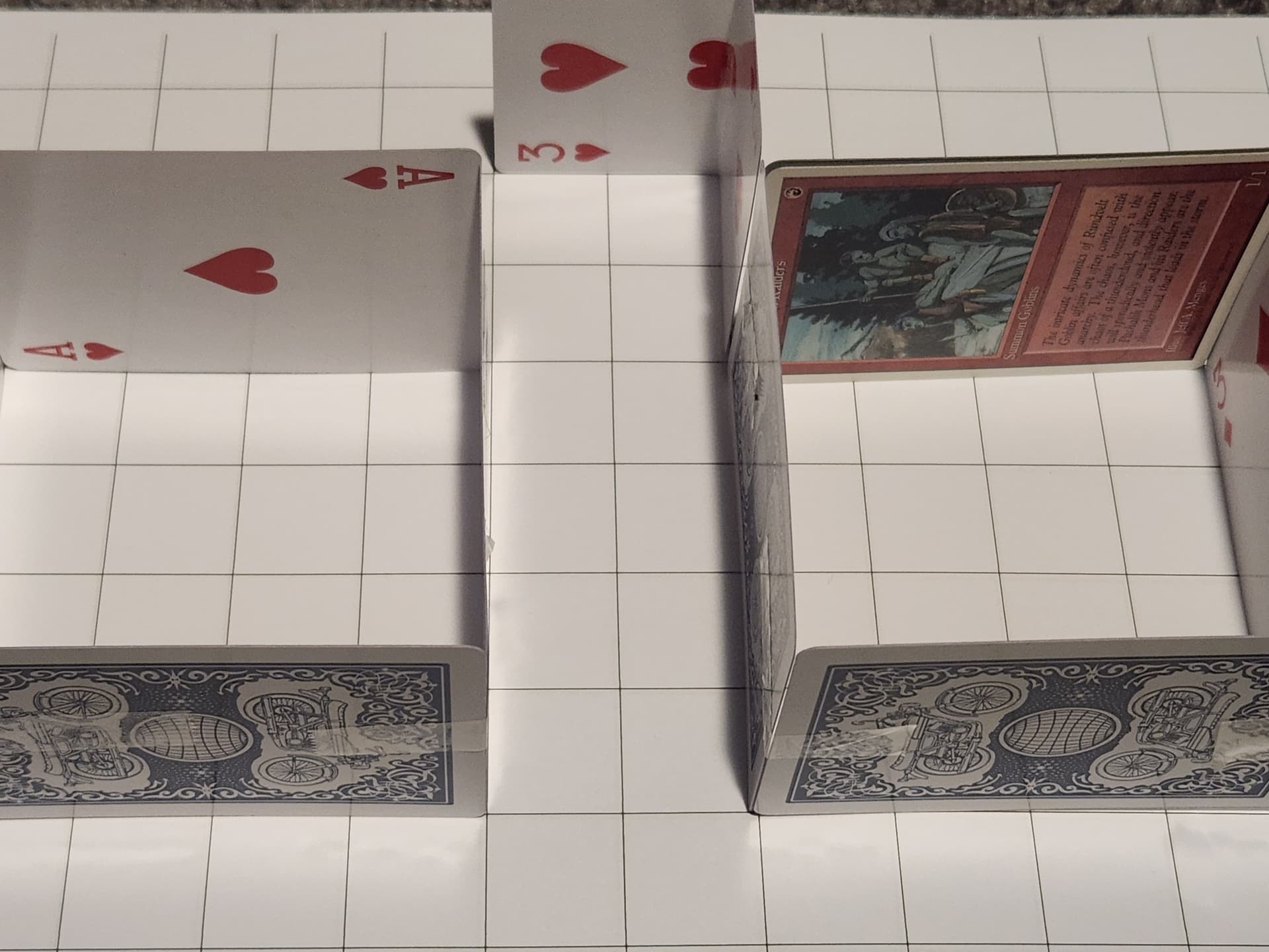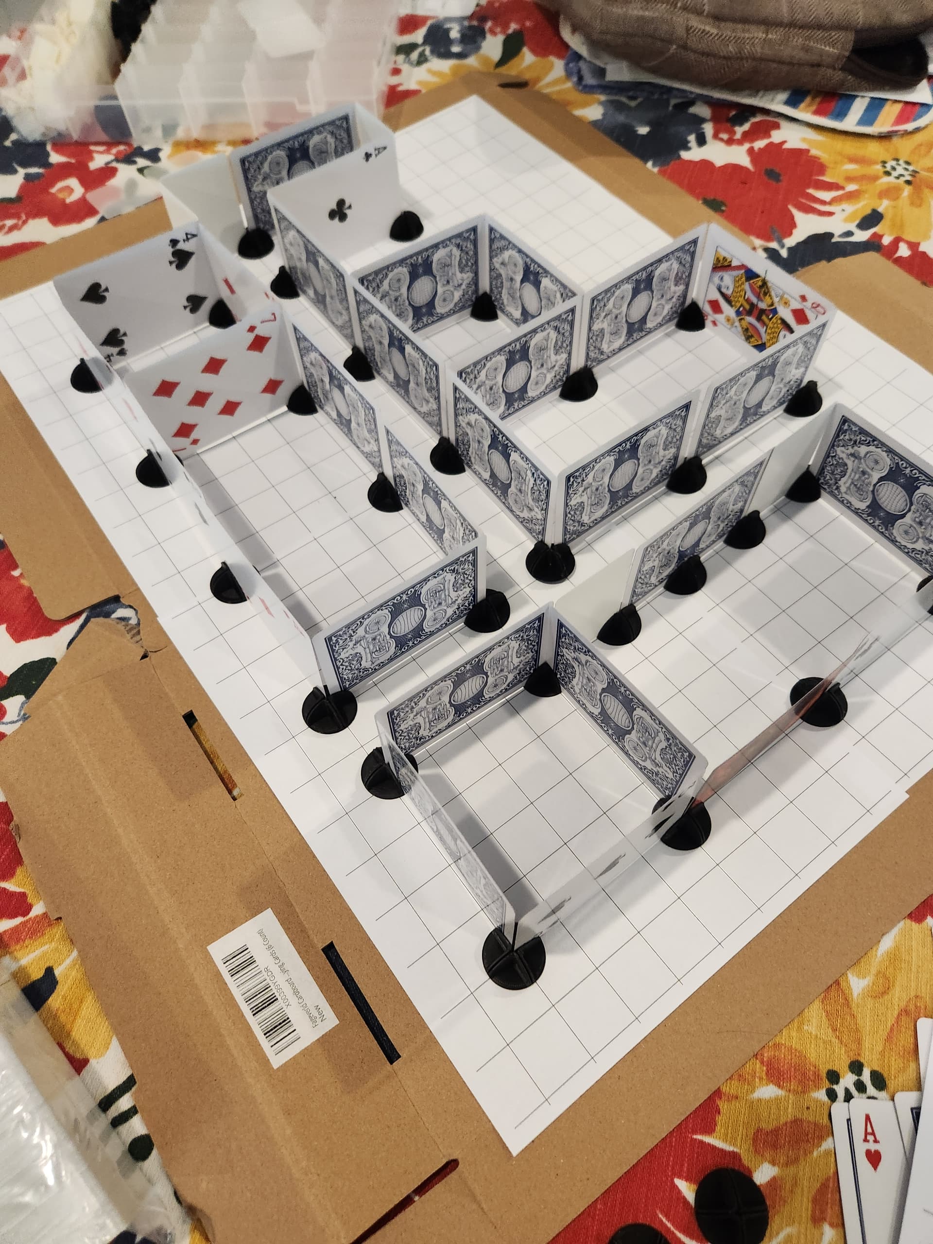 That is the idea. You can, given this orientation of poker cards, and “mini cards” Recreate any dungeon layout that you would want for AHQ… except with 4x4 rooms instead of 5x5.