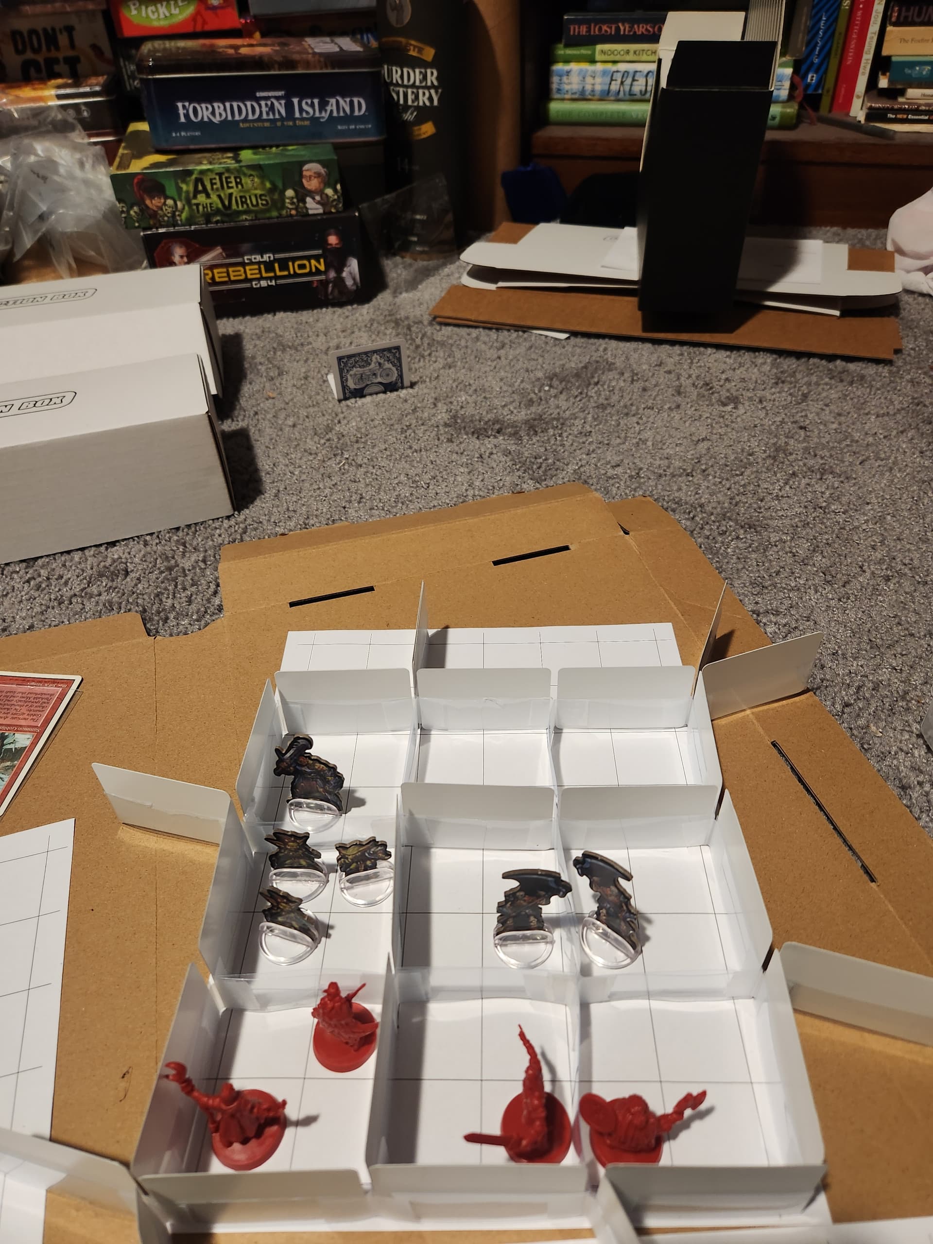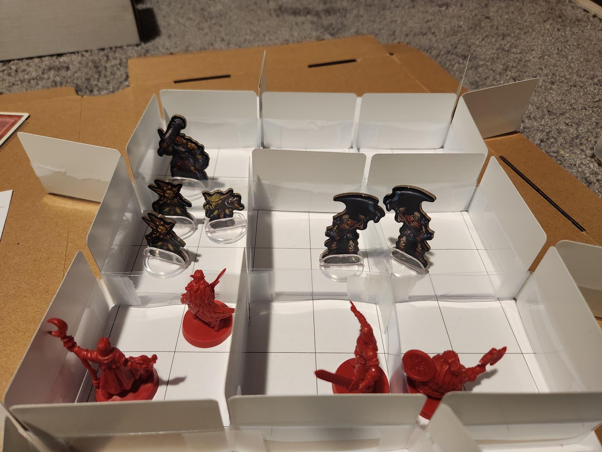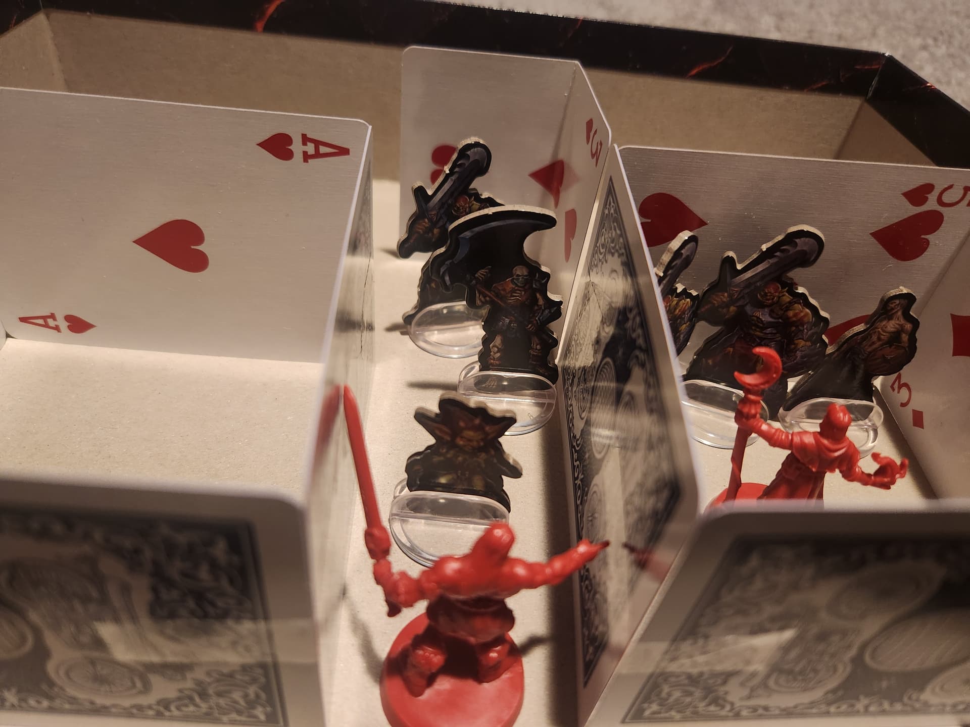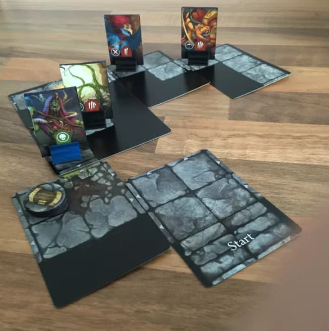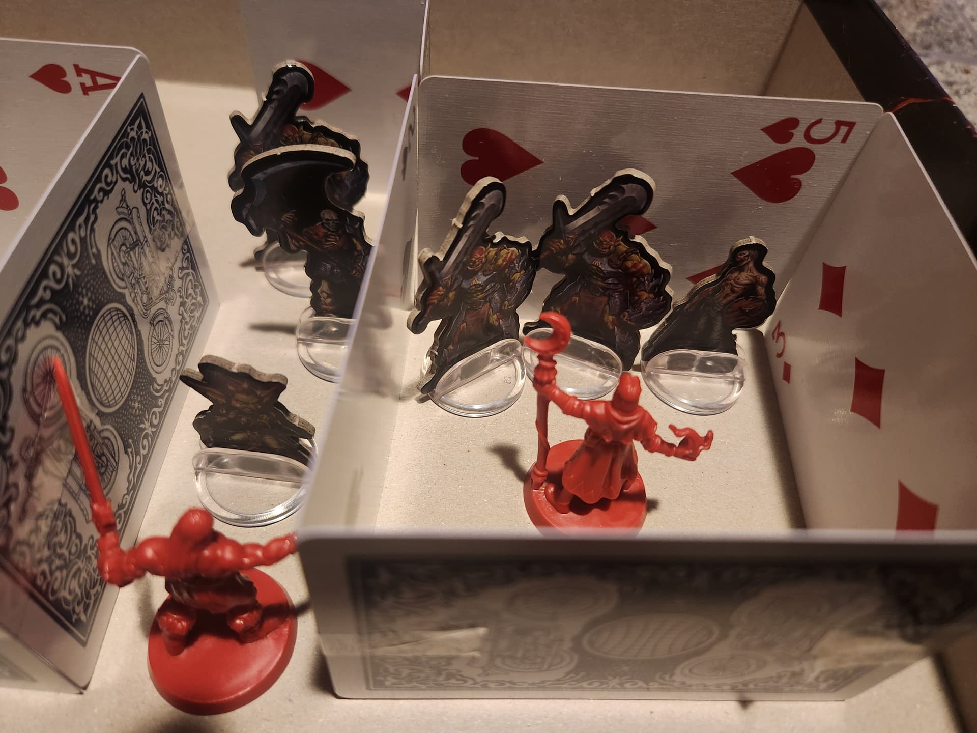 For example, unless you have standees/miniatures, and separate sets of rules that you have to reference, by looking up stats in a book, or on another card (i.e. Heroquest)… and I really really want to somehow have everything I need being a PART of the construction of the dungeon.