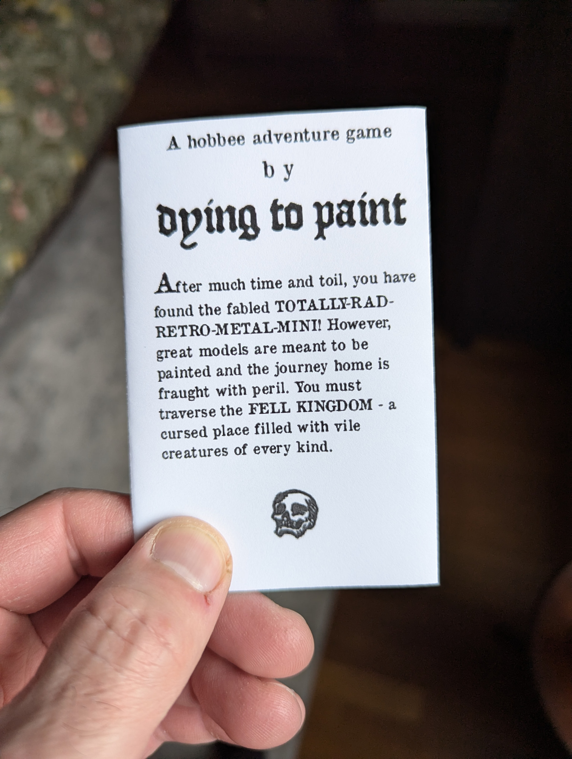 I made a small mini painting themed solo game to share at Adepticon. I gave a hundred copies away but I’m not sure anyone will actually play it. If anyone here is interested, I’ll see about posting it