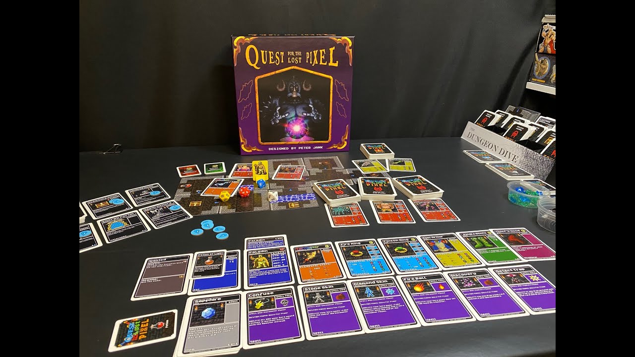 The headline: with four expansions now released and official support concluded, Lost Pixel has reached its final form. Nearly a thousand cards in the base game alone. Ten decks of monsters. Ten decks of treasure. Artifacts. Spells. Events. Cheat codes requiring Yahtzee-style mini-games to unlock. Fishing. Pets. Deity worship. Town rebuilding. Catacombs offering press-your-luck dungeon-within-dungeon exploration.