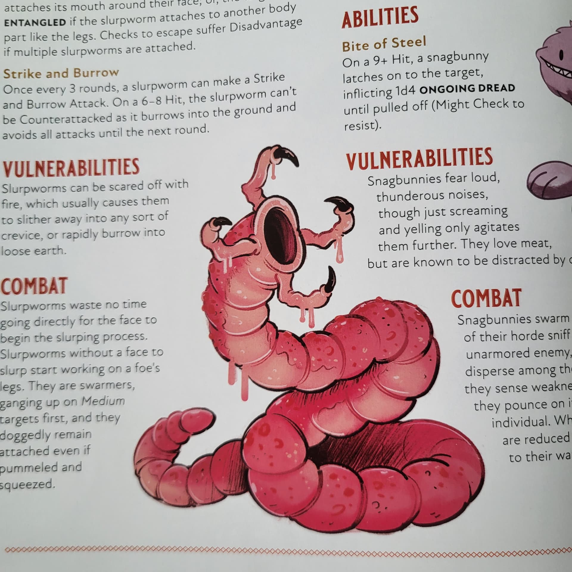 It does a great job of GM-less playing and is a reason why it clicked so well for me. The dungeons in Land of Eem are randomly generated with D100 tables which means there’s plenty to explore and it won’t get repetitive. They are a dungeon of the mind, so you’re not drawing maps (unless you want to). I’ve played games like Ironsworn and immediately bounced off of them because it felt like I was just writing a book and rolling dice.