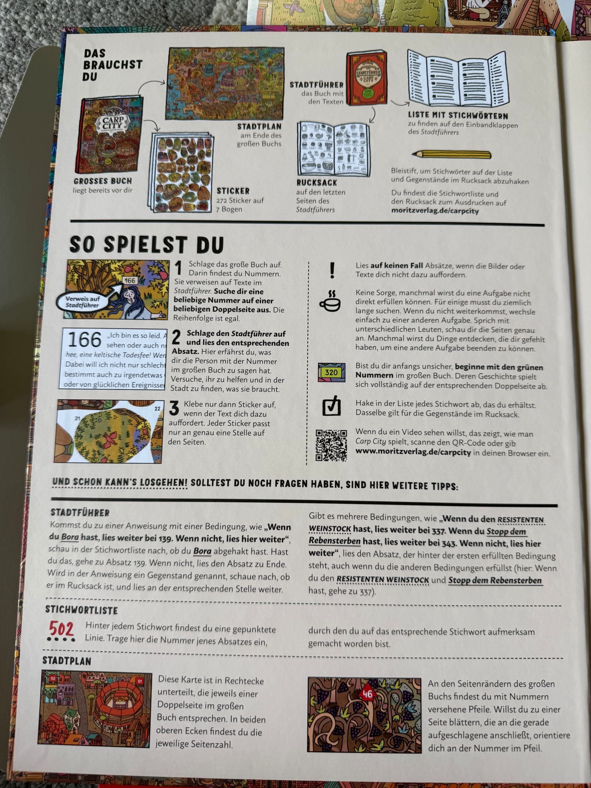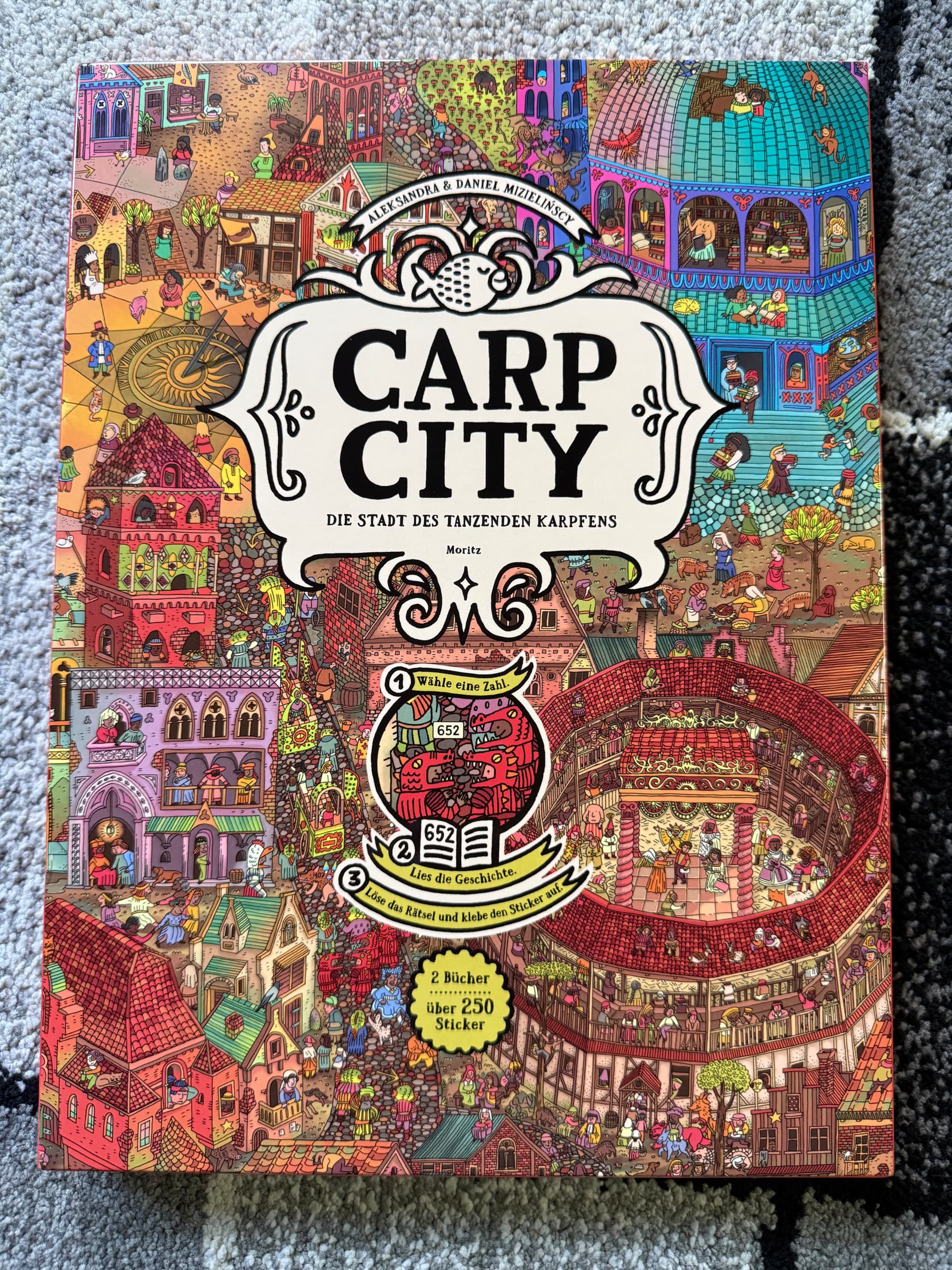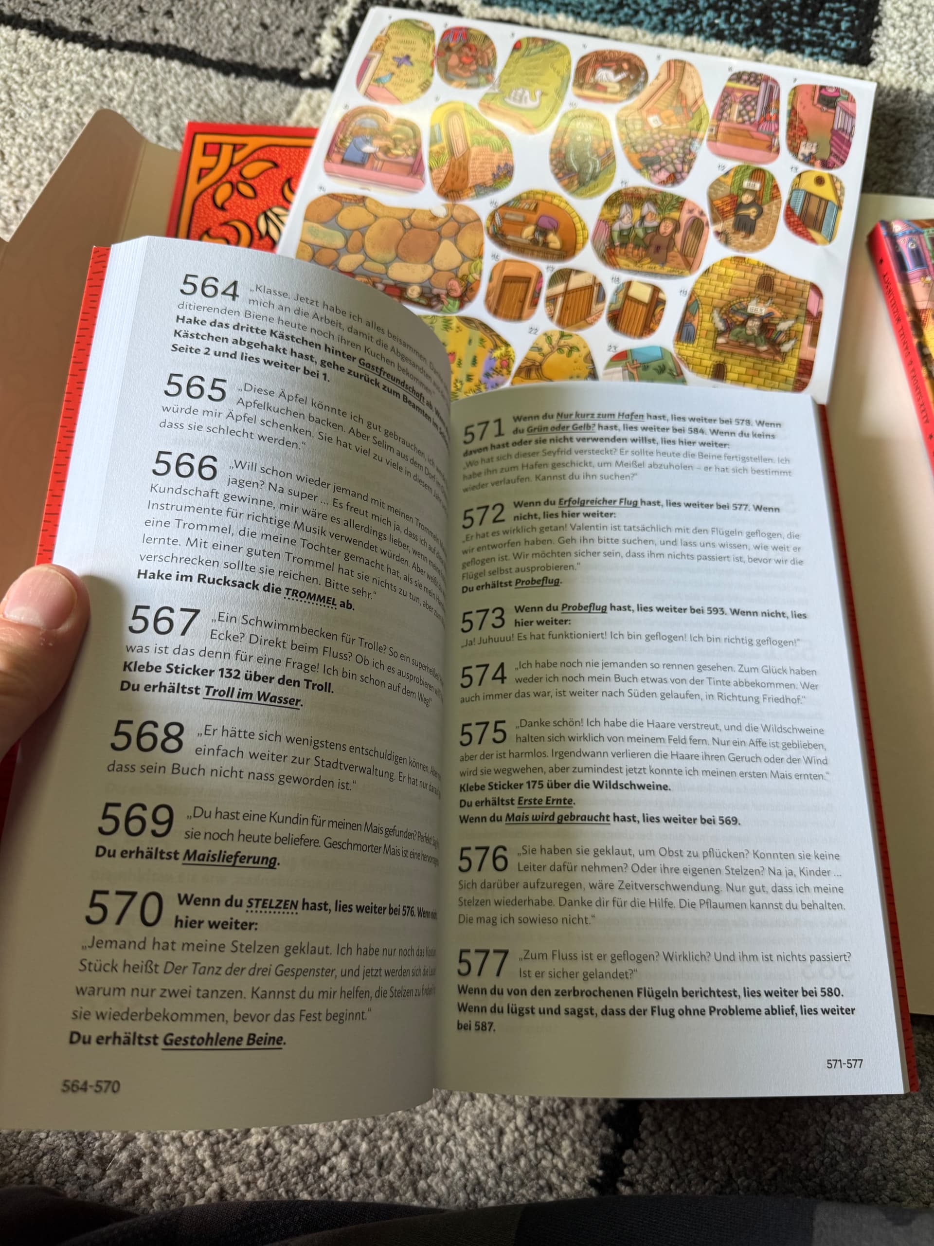 I play at the moment The City of the Dancing Carp (or Carp City, which is the German name). It is a mix between Wimmelbook and Choose Your Own Adventure, including 250 stickers to mark changes in this gigantic world, which has over 30 pages. And the paragraph book has nearly 1000 entries.
