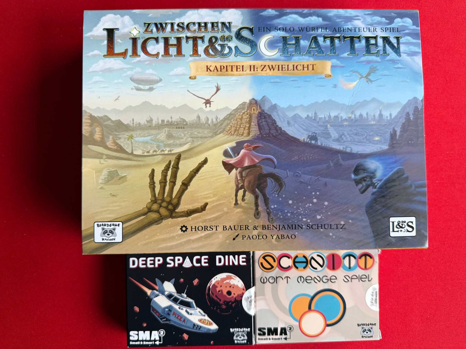 Not direct on the table, but I received my package from Boardgameracoon with all new games from 2025. I started to read the rulebook from Deep Space Dine and Between Light & Shadow - Chapter 2: Twilight. I am really interested in these games right now. Especially BL&S2, because I loved chapter 1.