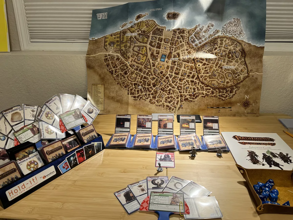 Pathfinder Adventure Card Game: Mummy’s Mask. Yeah, you may notice I have a very unique setup